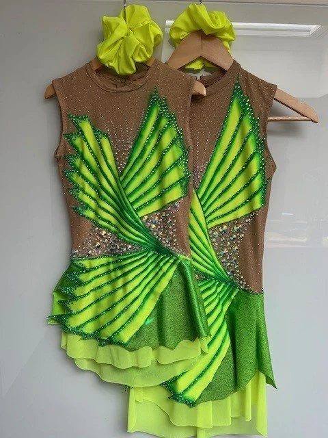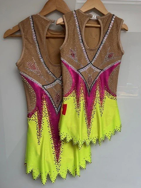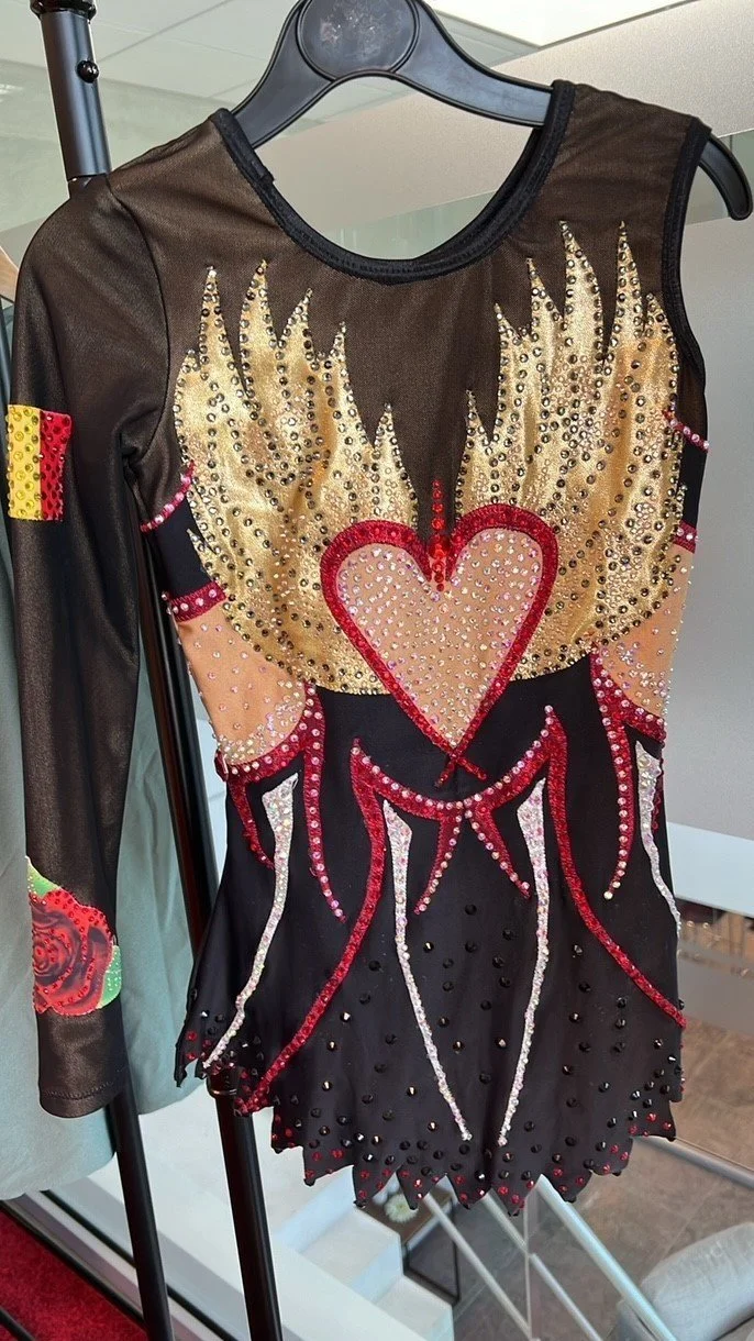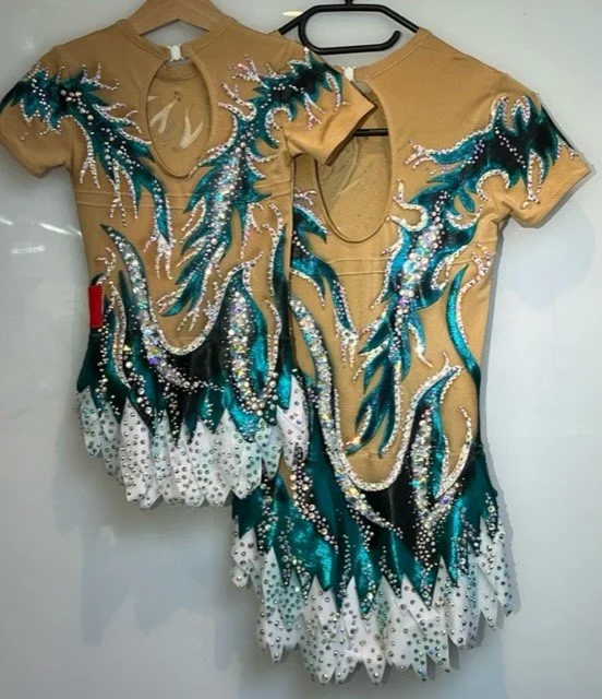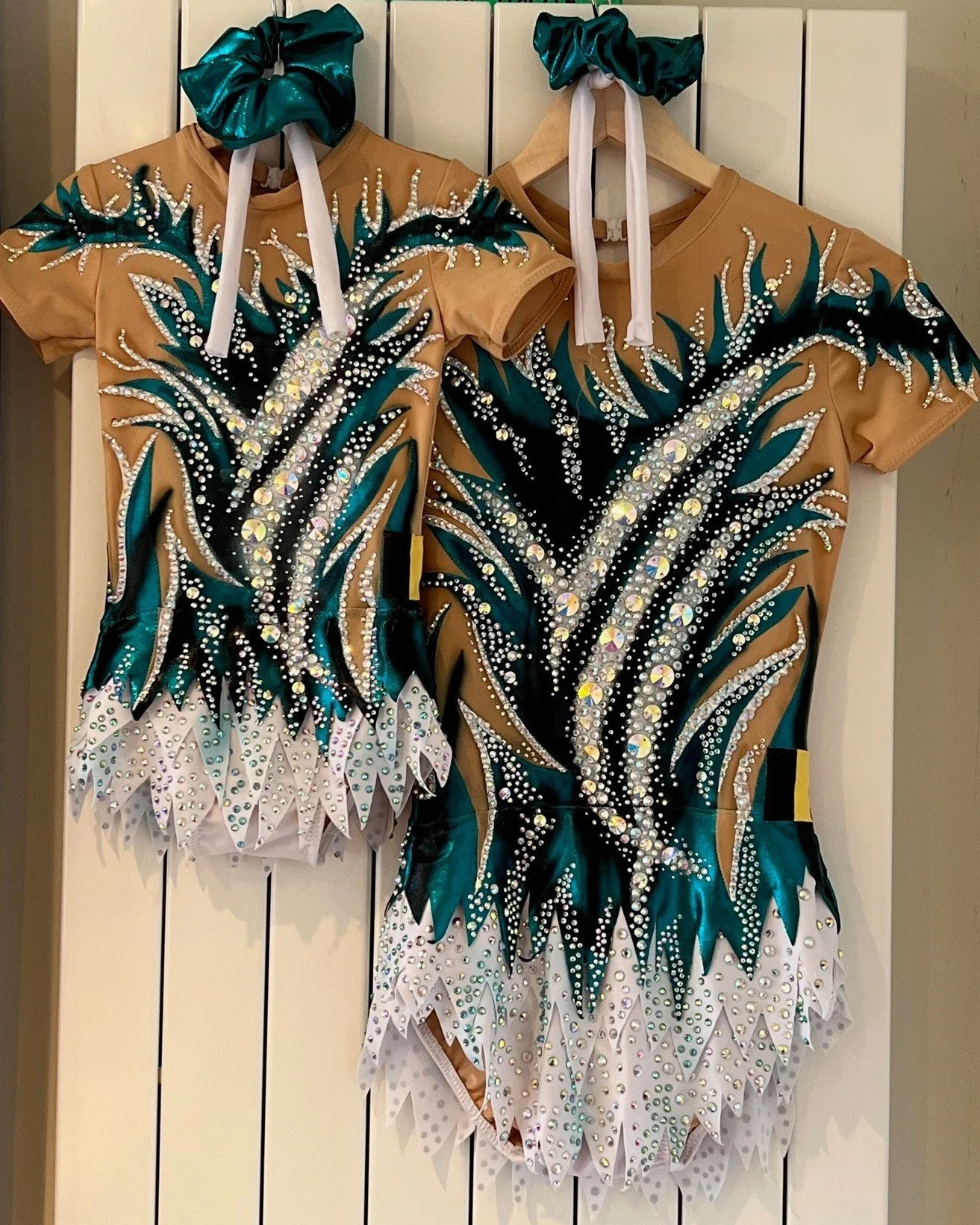 Een leuk en fleurig pakje voor een trio voorzien van steentjes en de Belgische vlag voor internationale wedstrijden.